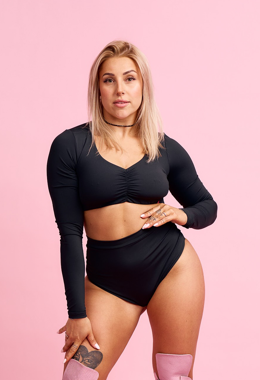 This long-sleeved pole dance top combines expressive style with functionality - made of elastic, thick fabric that pleasantly hugs the body, shaping the figure and ensuring complete comfort during every movement.